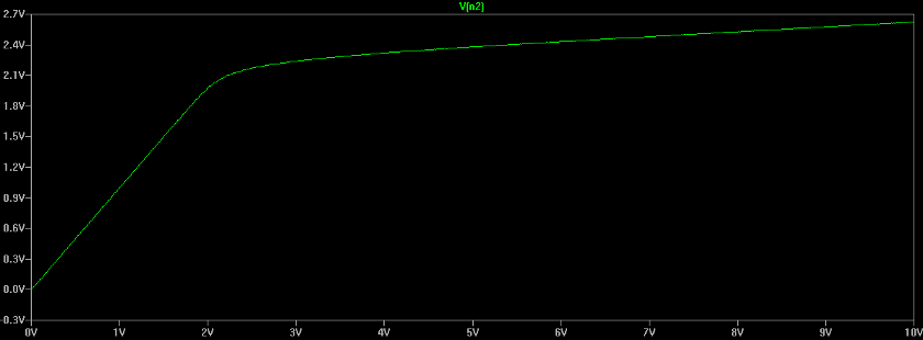 As you can see on the output sweep that the reference isn't that accurate and this circuit also has a power consumption problem. R2 is only 20 Ohms and it takes lots of current from the power supply, when supply voltage is high. If R2 is changed to a bigger value output voltage drops slightly. I exchanged it to a 10k resistor and output voltage drops to 1.3V and current taken from the supply is only 0.5mA when input voltage is 4V and 1.4mA when voltage is 10V. This starts to be a reasonable current considering that transistors used are discrete components. If this was an integrated circuit it would be still a too big current.
