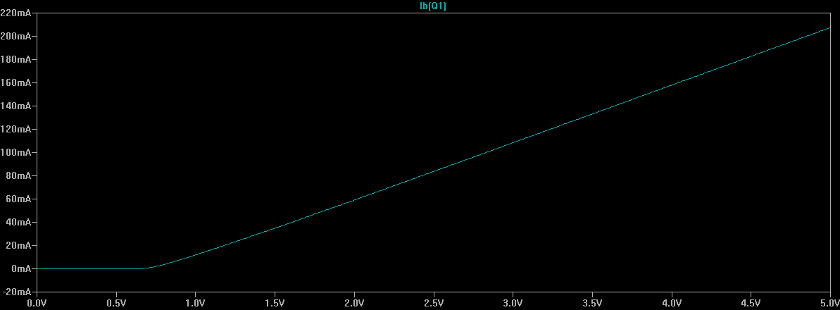 And if we look at the base current of Q1 maximum current is 210mA when input is at 5V. This is too much for 2N3904 transistor and real transistor would probably break.